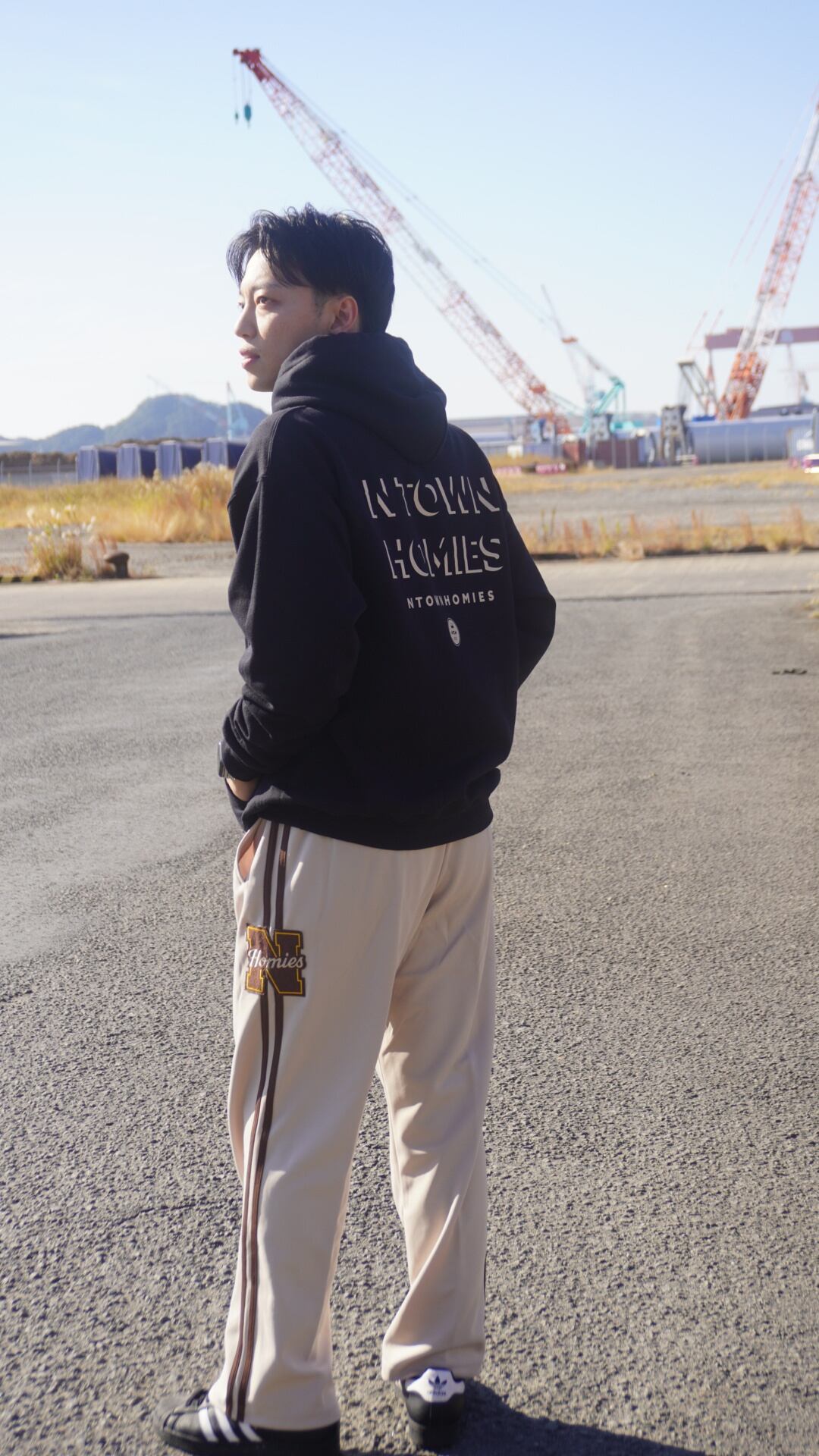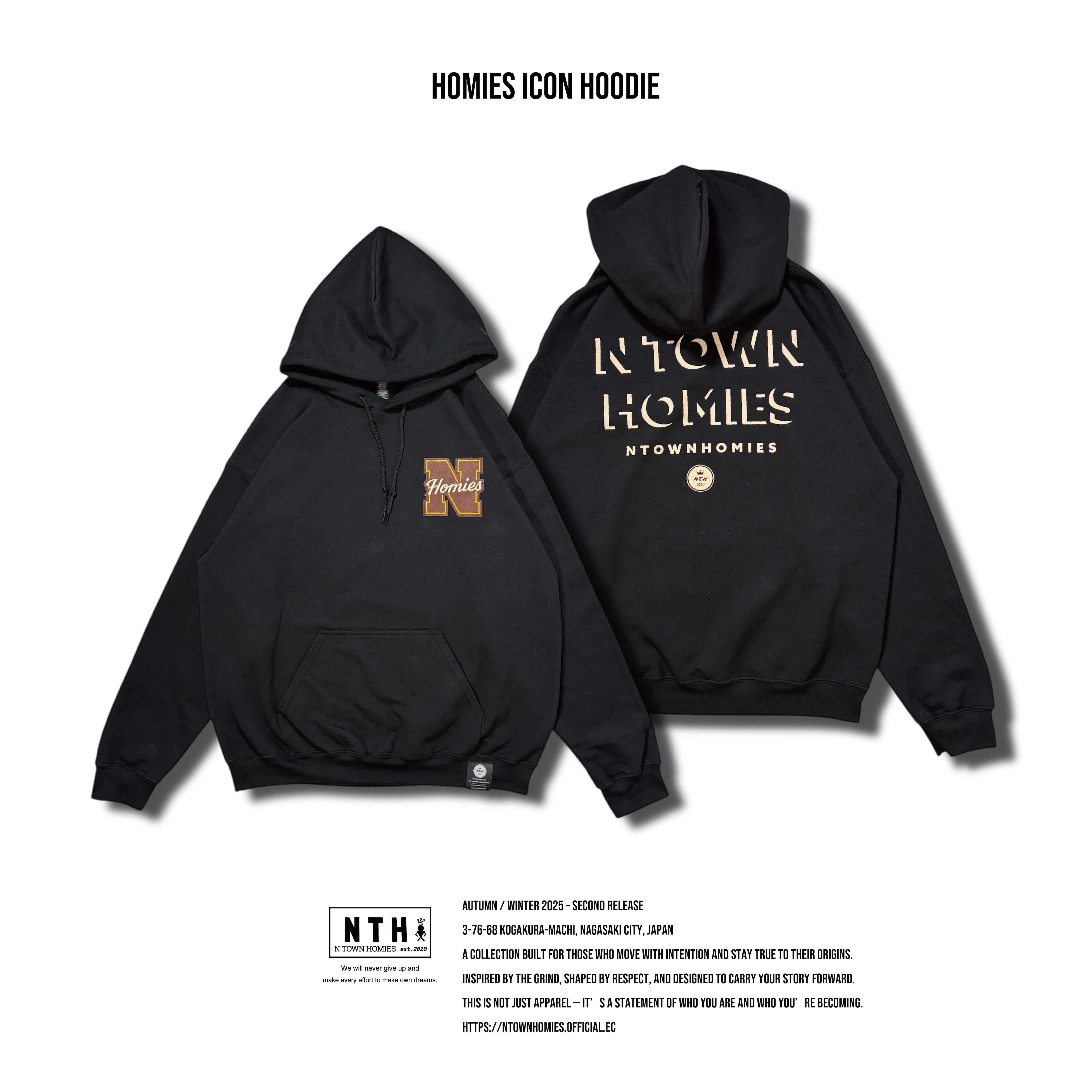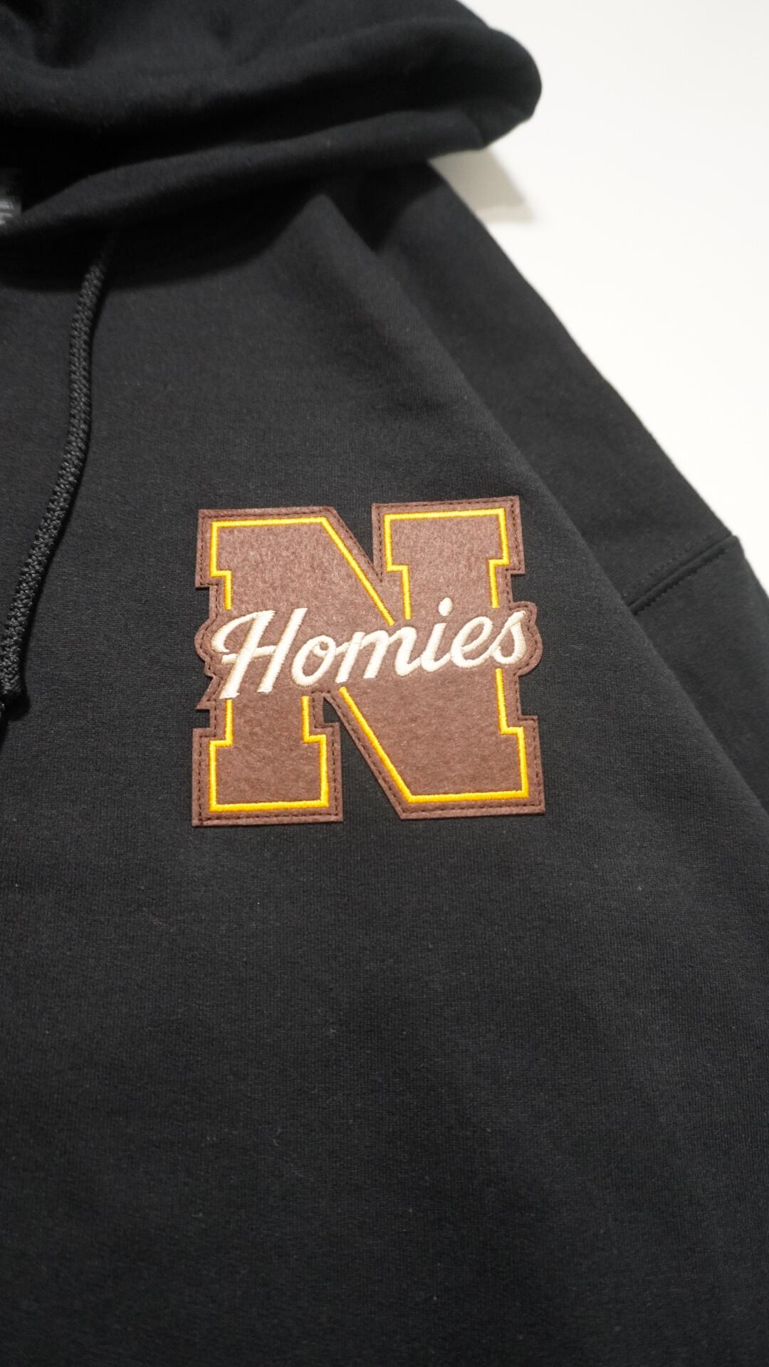 胸元にはブランドの象徴である“N HOMIES”ワッペンを配置し、シンプルな中に確かな存在感をプラス。