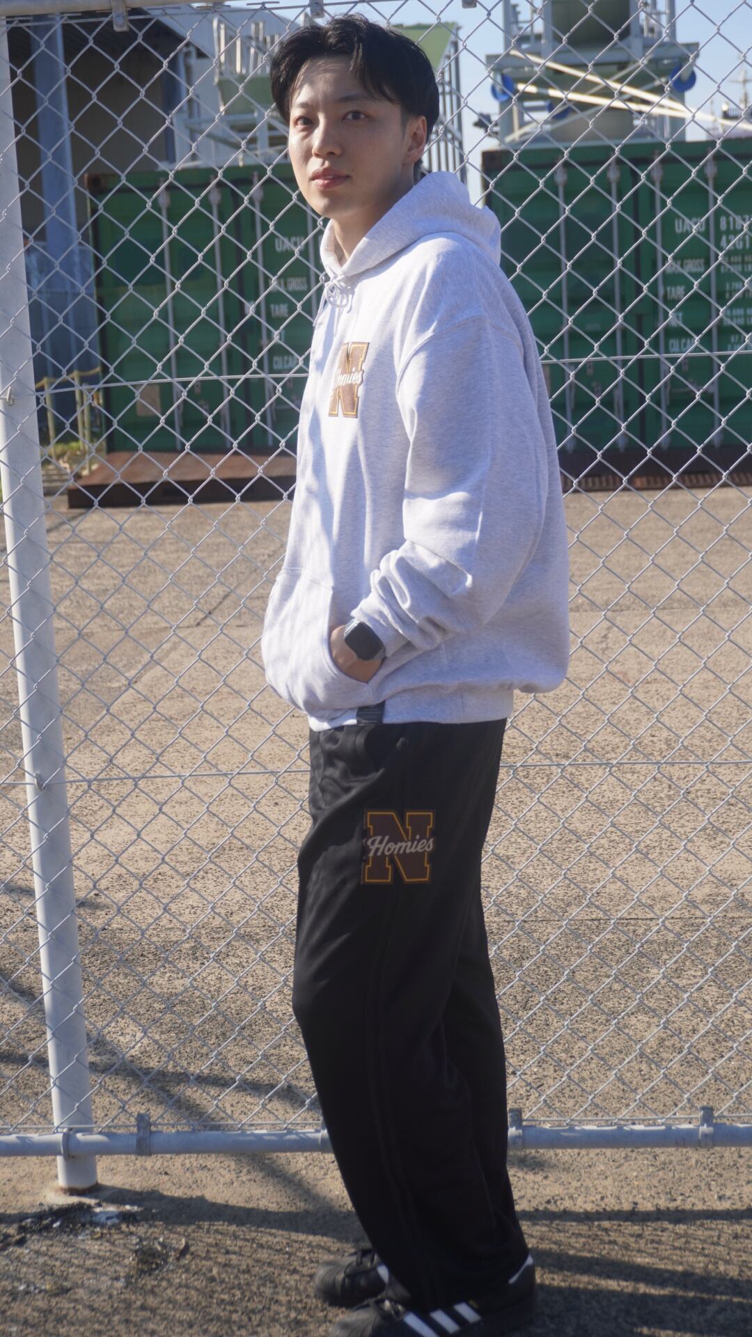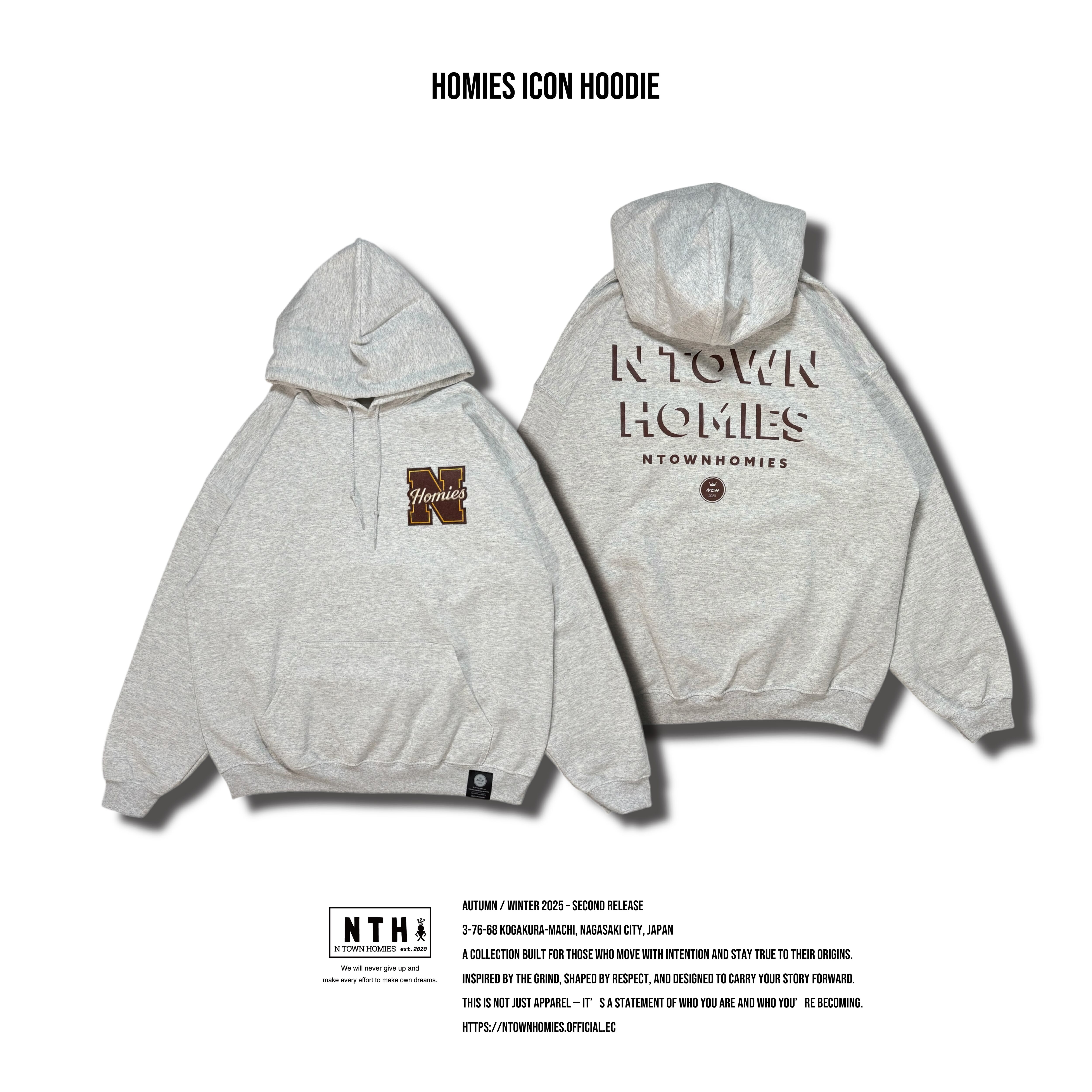 胸元にはブランドの象徴である“N HOMIES”ワッペンを配置し、シンプルな中に確かな存在感をプラス。